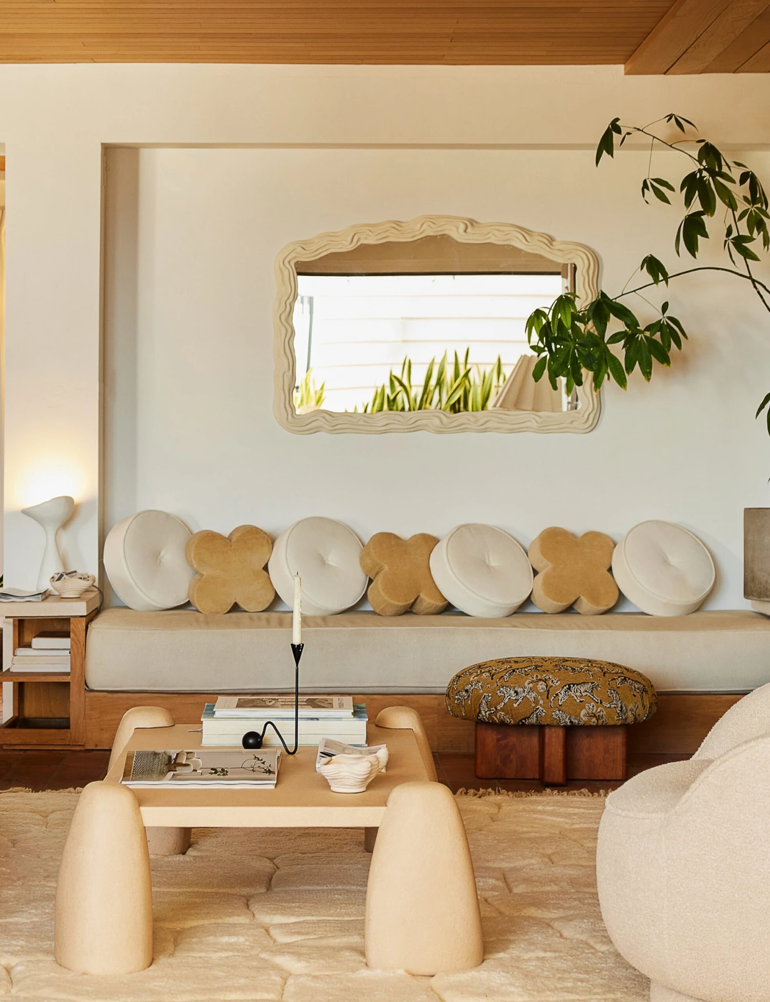 The Anastasia mirror offers fresh texture with a bright appeal. The white frame ripples and folds with a delicate elegance—perfect for bright and airy curations. This wall mirror is from our exclusive Sarah Sherman Samuel collaboration and features all the trademarks of her warm, edited style.