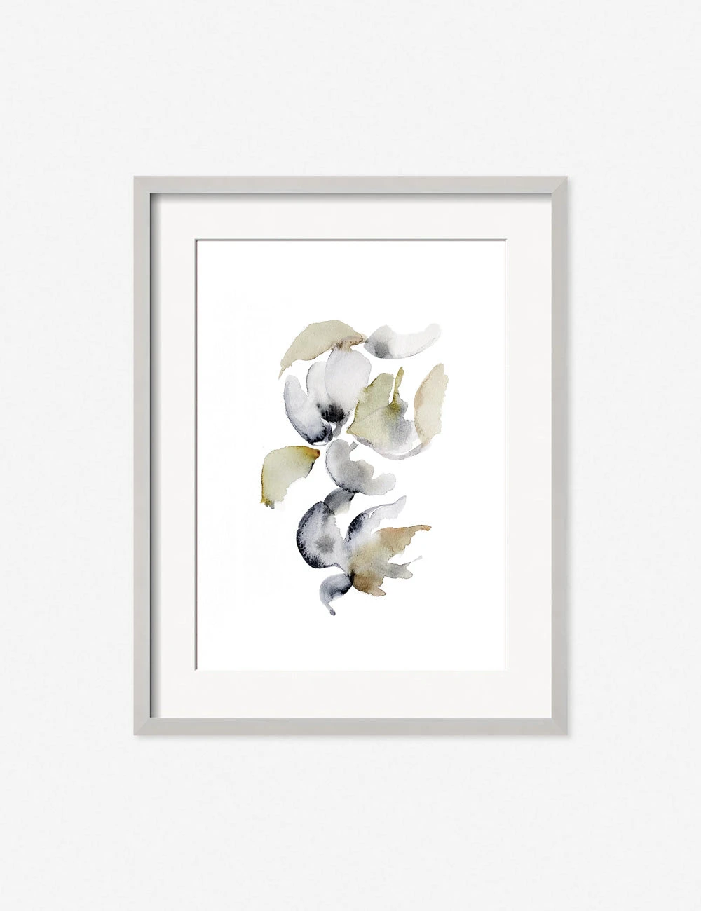 With its playful arrangement of delicate petals, this wall art print features a minimalist composition balanced by a two-tone palette. The soft colors and watercolor texture suggest a velvety floral touch perfect for adding a fresh dimension to a minimalist art wall aesthetic.