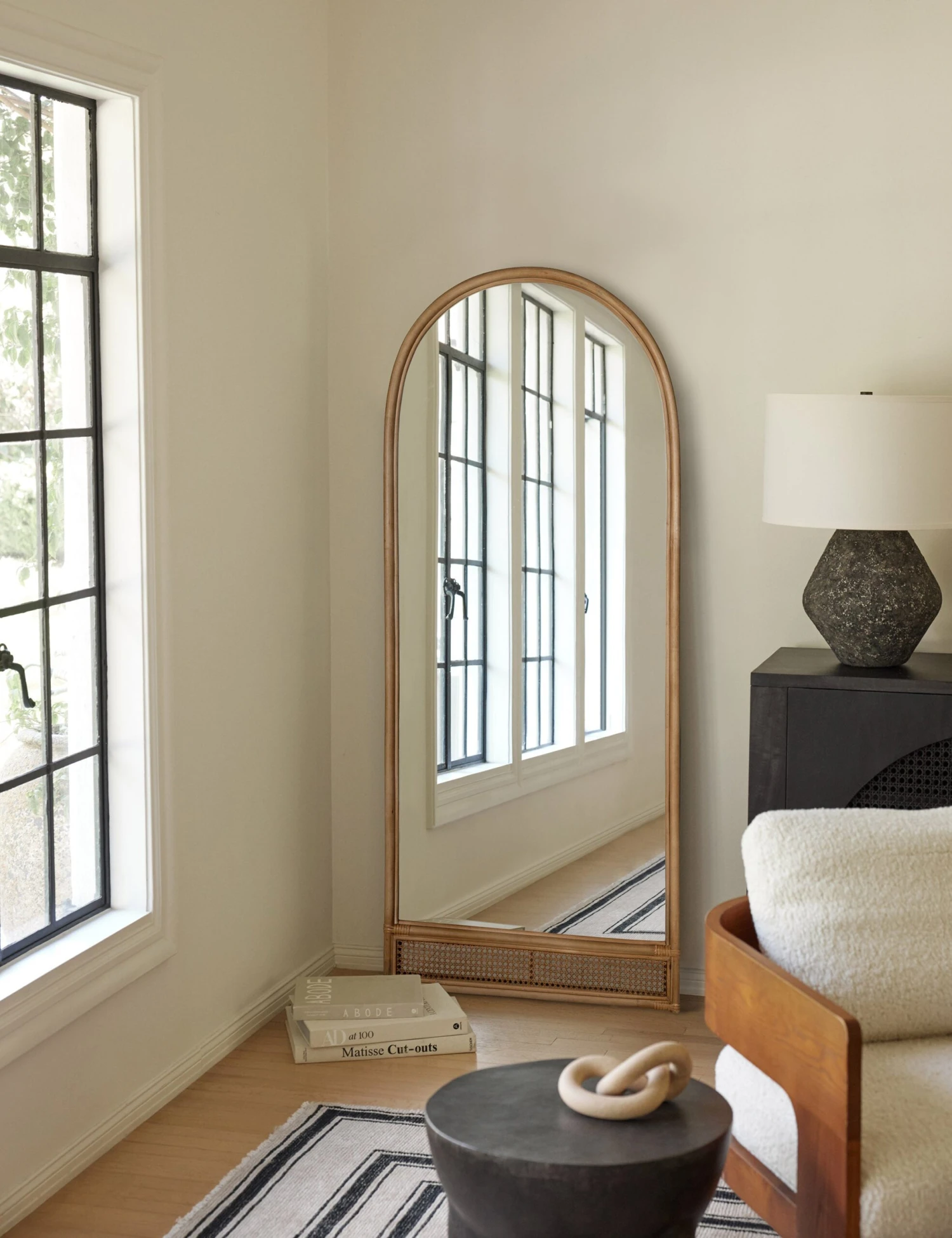 An arched frame and rattan paneling combine to make a timeless statement in the Booker mirror. We love this wall mirror’s soft, natural appeal for layering organic warmth and a fresh dimension into any thoughtfully collected space.