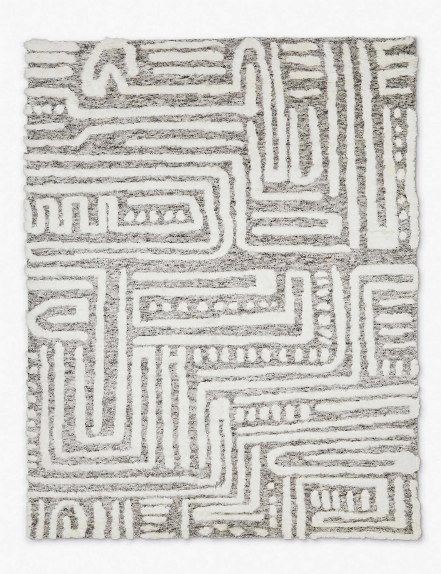 Made entirely by hand in Bhadoi, India – this rug is a beautifully crafted. Hand-knotted using the highest quality wool, this ultra-soft rug makes a bold statement. The abstract pattern features defined highs and lows, creating varied dimension for a more modern look area rug. The base of the rug is varied, natural gray wool and the design is natural cream.