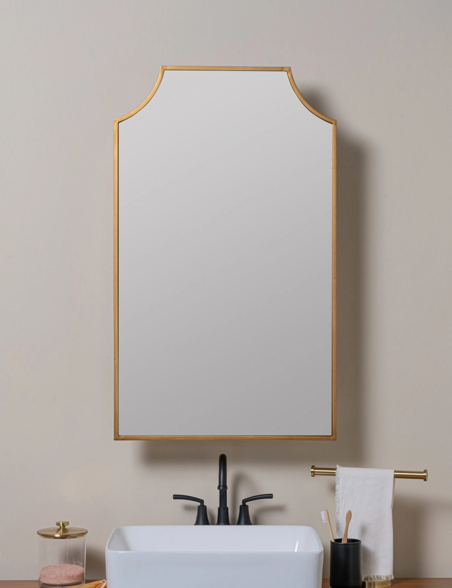 A sleek frame with scalloped corners brings a stylish edge to the Christiane medicine cabinet. Whether adding functional storage to your en suite or creating a space for amenities in a guest bath or powder room, this medicine cabinet is set for effortless elegance.