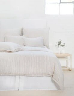 The Connor bedding collection is made with an ultrasoft linen-cotton blend featuring subtle stripes in a serene palette. This duvet is perfect for the grounding layer of a collected bed set. Shell button closures offer a refined touch.