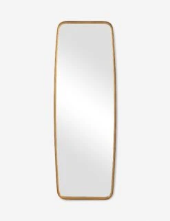 With a matte black or antiqued gold finish and subtly curved design, this full length wall mirror expertly combines a sleek, modern look with everyday functionality. This framed full body mirror is an ideal fit for your bedroom, walk-in closet, or your entryway.