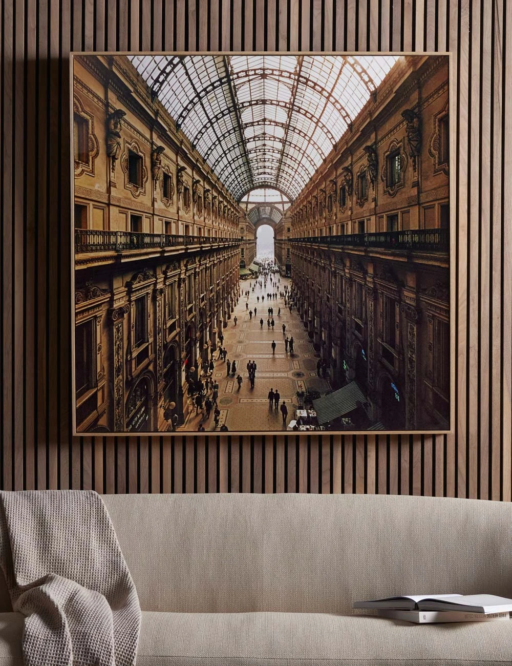 The arched glass roof and ornate facade of Milan’s oldest galleria offer architectural symmetry with an antique tone. This wall art print showcases Slim Aarons’ legendary photography—capturing a vintage world of jet set leisure. Printed directly on aluminum using ChromaLuxe technology to offer unique, gallery-quality wall art filled with stunning color and definition.