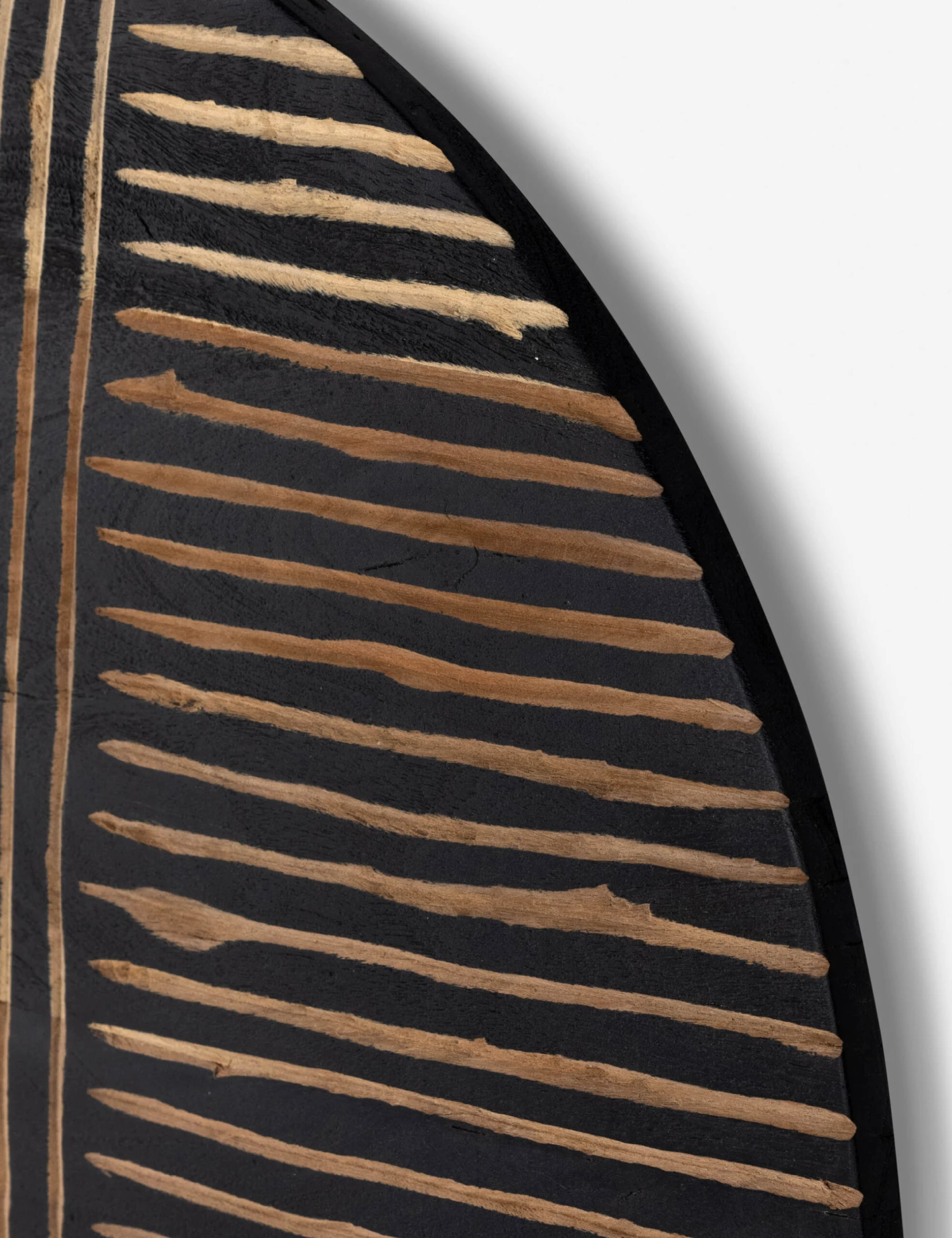 This set of complementary circular panels offers an organic style in this two-piece wall hanging. An earthy design with a dark finish makes these pieces a strong textural layer of artwork for walls in a moody, collected space.