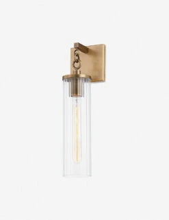 Traditional notes meet modern design in this timeless sconce. The brass finish has a beautiful patina balanced by the sparkling sophistication of a borosilicate glass shade for a sconce light you can style indoors or out—perfect for a stately entryway or hall.
