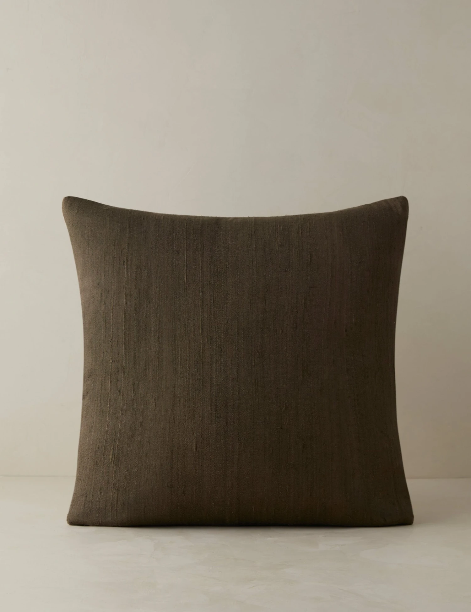 James Perkins’ art inspires elemental impact—cutting across mediums with explorations of sculptural forms and nature. In this exclusive collaboration, we translate his work into a collection of textiles and wallpapers for your home. This accent pillow evokes the grounding tones of the organic world. Its silk case and down fill make this a luxurious addition to any throw pillow collection.