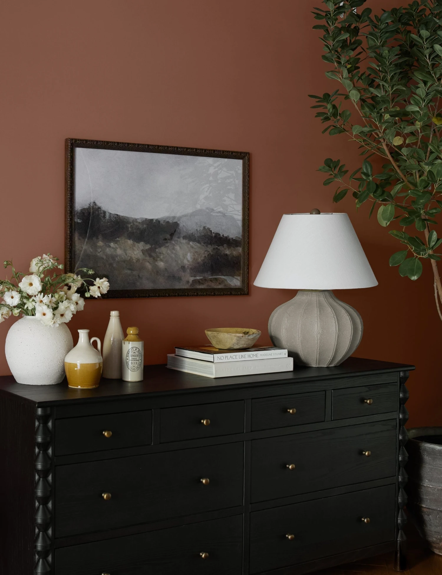 Soft brushstrokes and an earthy palette yield a lush pastoral scene in this wall art print by artist Hannah Winters. Bring a fresh dimension to your art wall decor with the atmospheric depth and natural air of this painterly landscape.