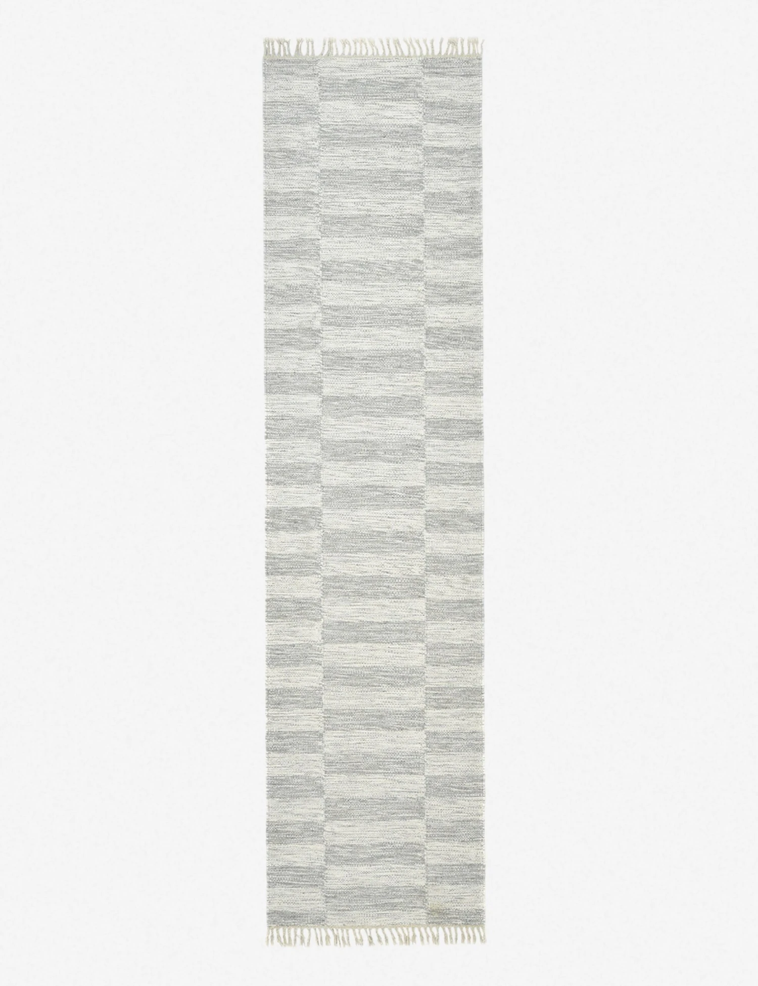 An offset stripe design in a tonal, heathered blue-gray color seamlessly combine to create this flatweave floor rug. Its wool-cotton blend construction makes this area rug durable and low-maintenance—great for high-traffic rooms, entryways, hallways, and in homes with kids and pets.