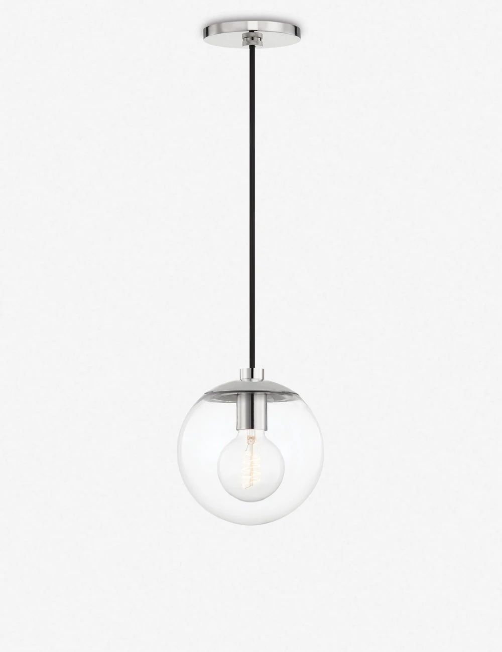 Soft angles and a glass shade make this globe pendant light the perfect element for transitional spaces. We love this single pendant design for a small-space overhead light or styled in pairs for a kitchen or living space.