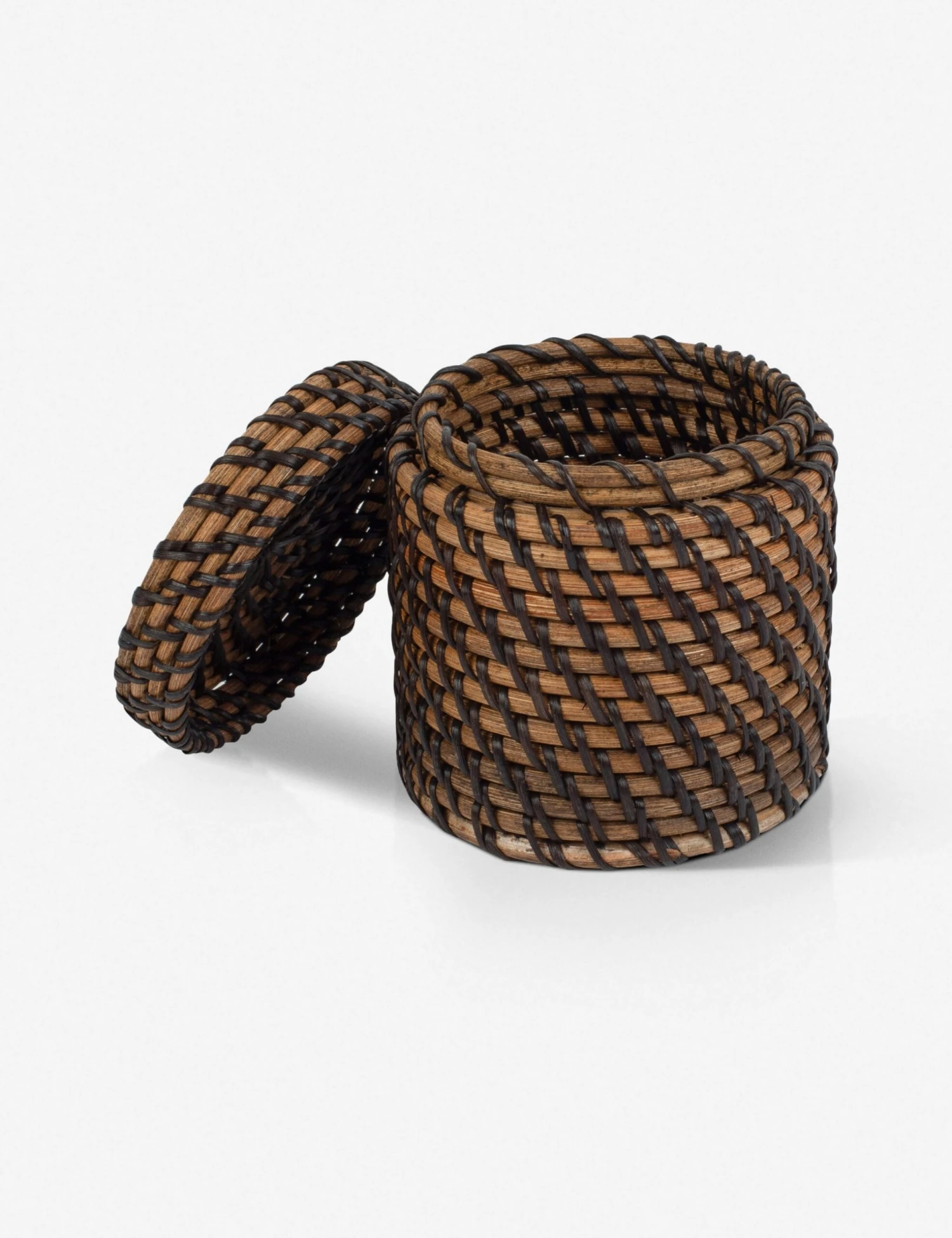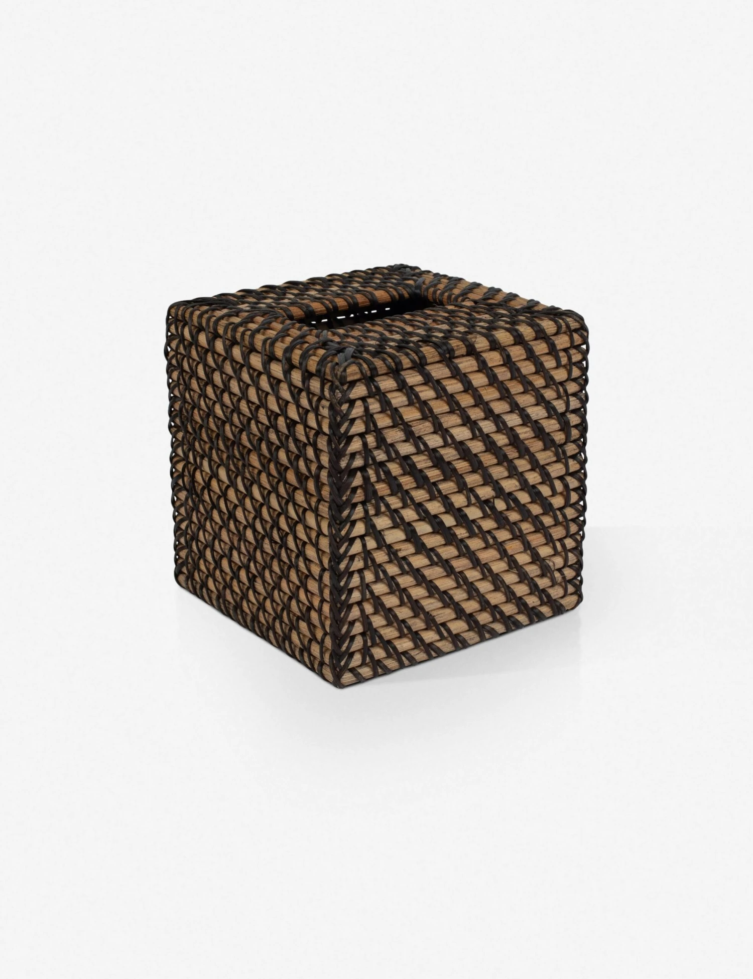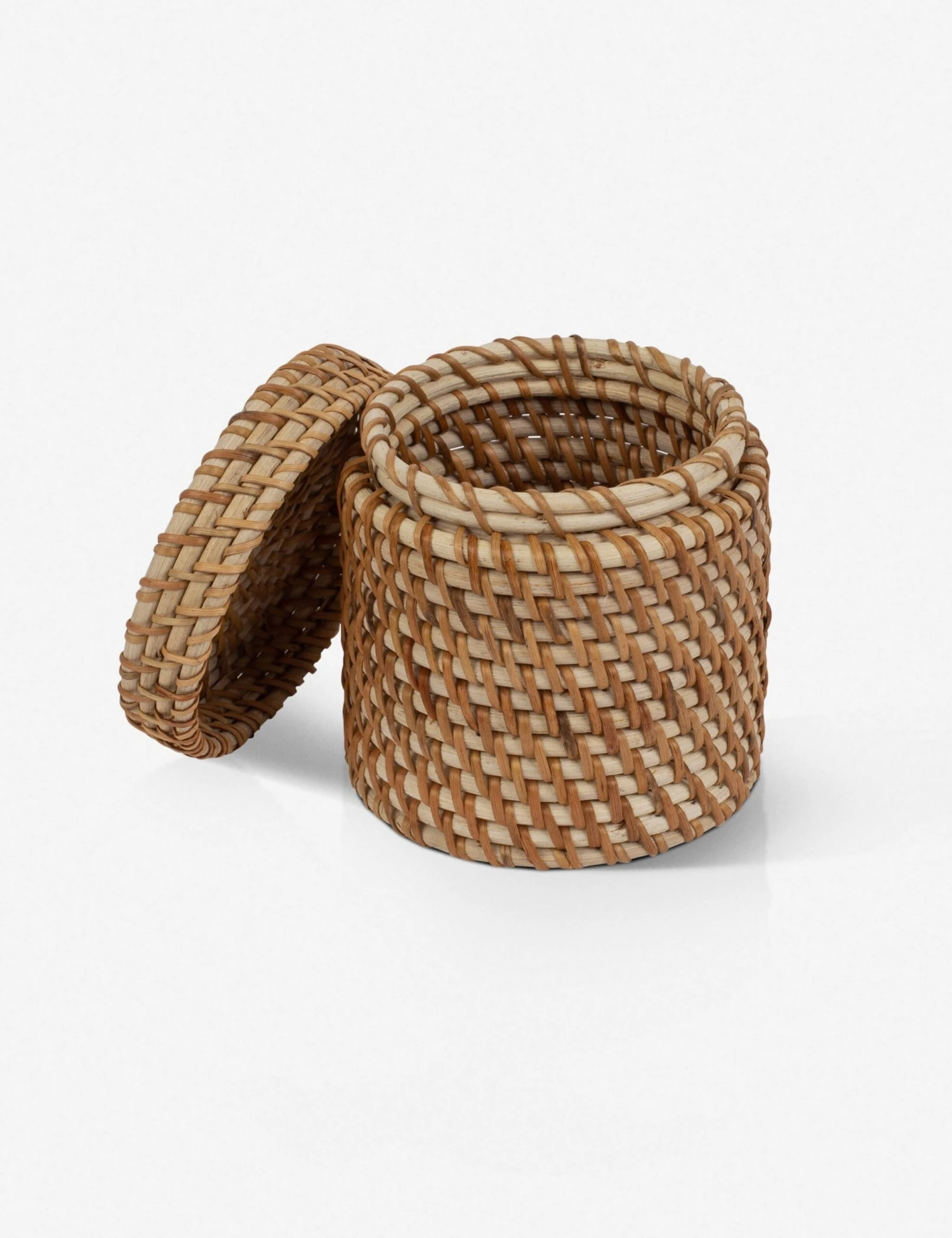 This four-piece vanity set is the perfect way to keep your bathroom counter organized in style. Featuring a tissue box, storage canister, soap dispenser and tray woven with natural rattan, this amenities set adds an organic appeal to the look.