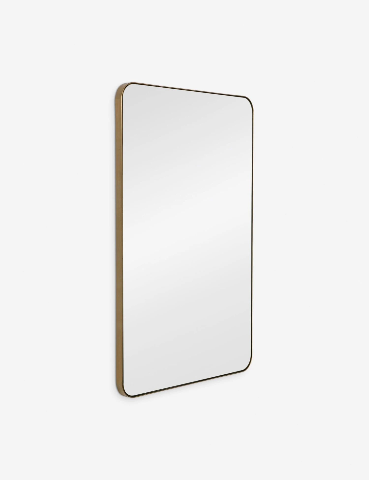Rounded corners soften the look of this chic, minimalist wall mirror. Perfect for contemporary spaces, this mirror is perfect above a bathroom vanity or dresser for a modern touch.