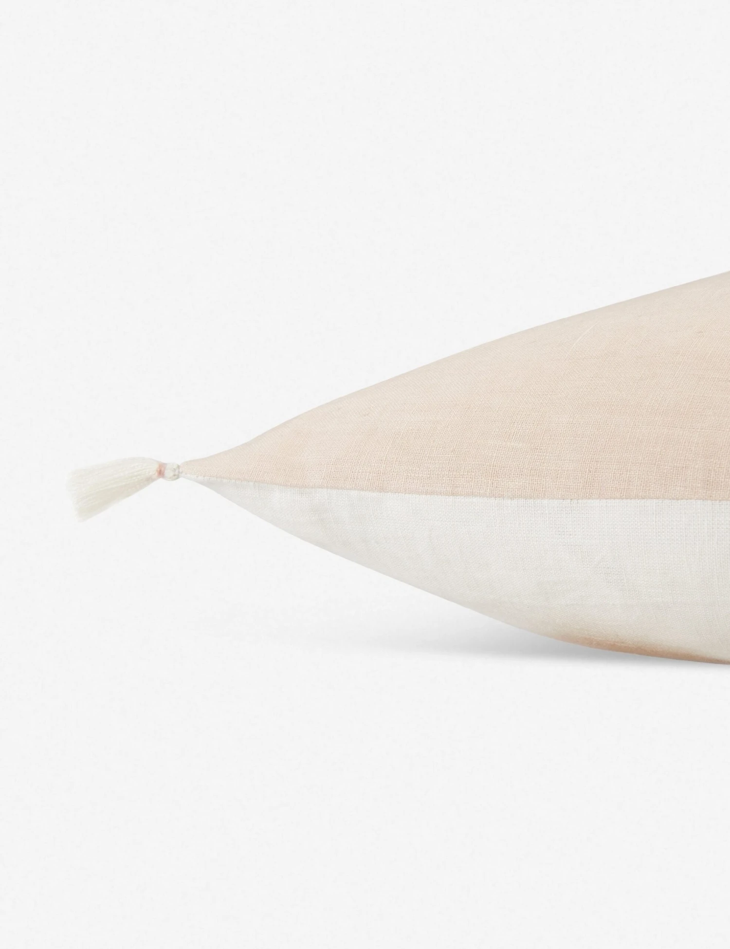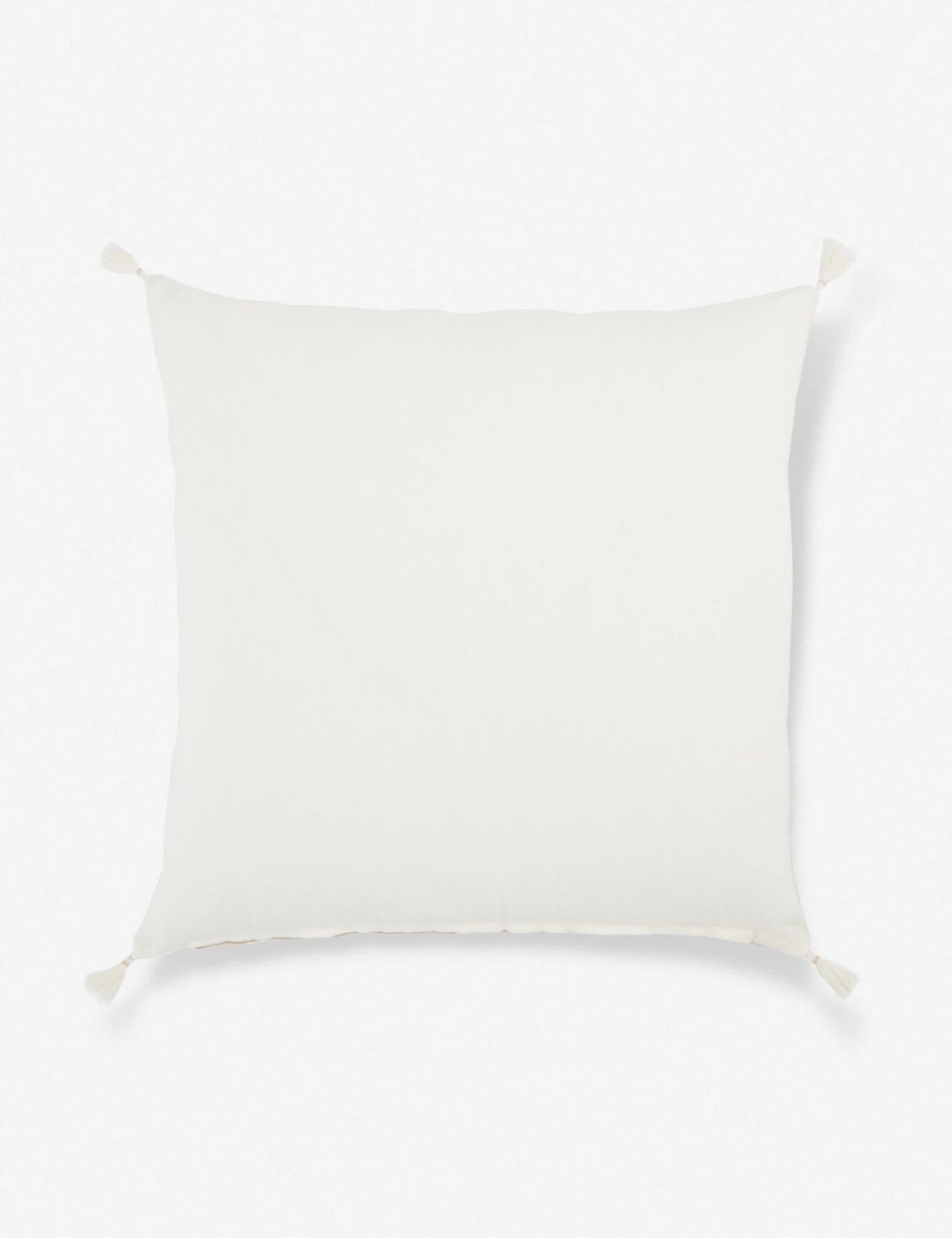 Woven from linen, this throw pillow is an elevated accent to add to your bedroom or living space. Muted blush and ivory tones, an embroidered center stripe, and corner tassels give this decorative pillow its global feel.