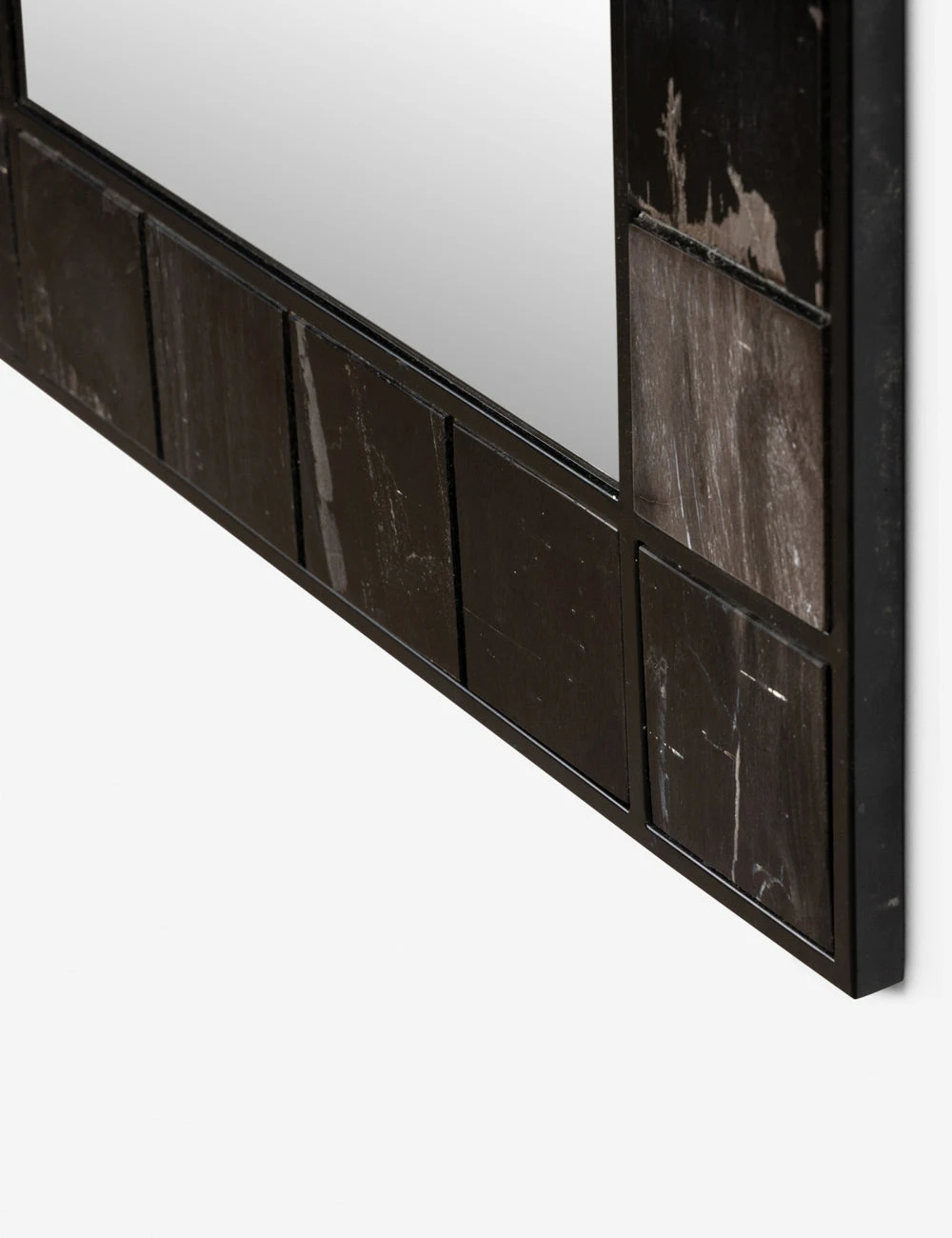 Panels of petrified wood in an iron frame set this mirror off with a rich depth and subtle industrial tone. We love this wall mirror’s statement appeal for bringing character and definition into an entryway or hall.
