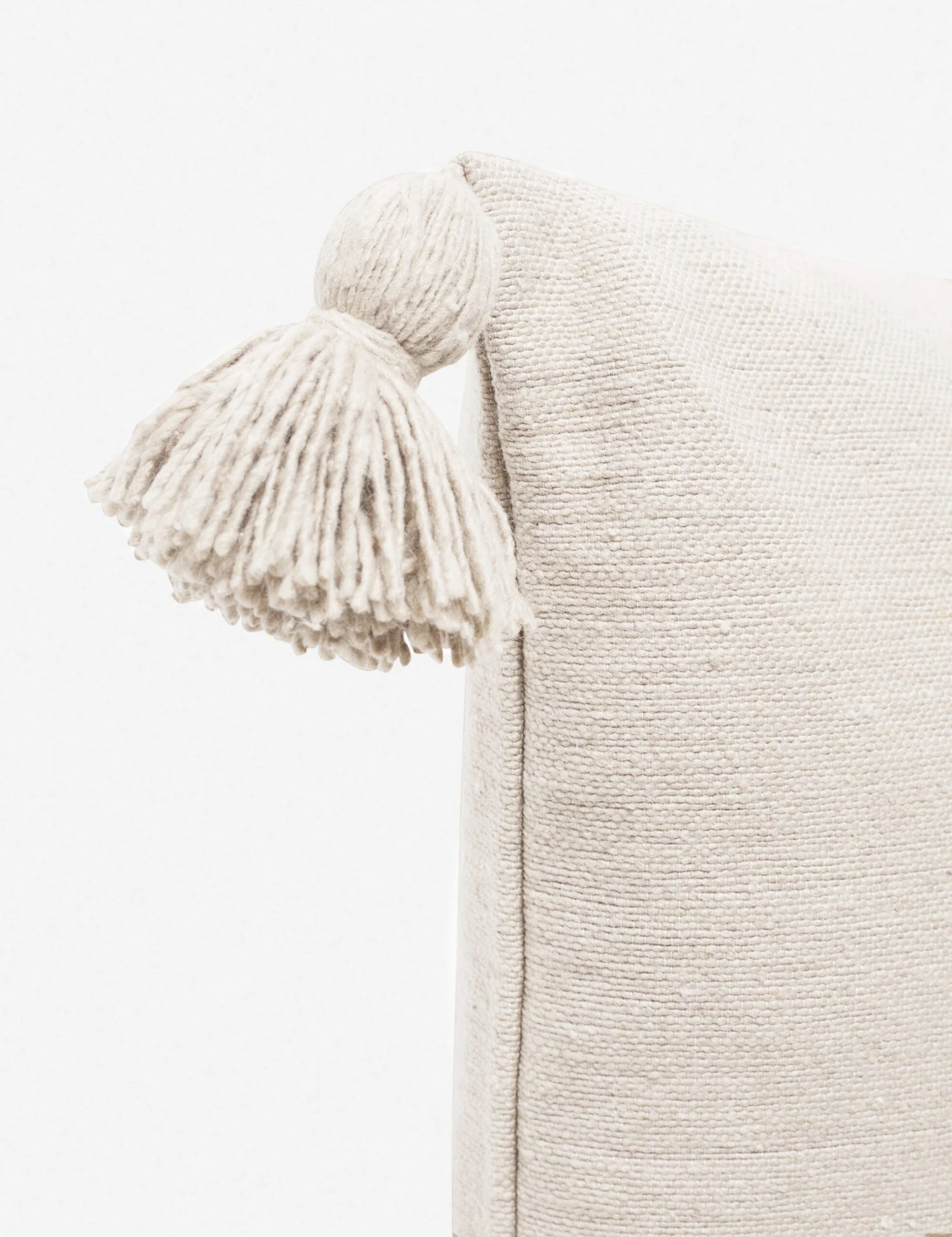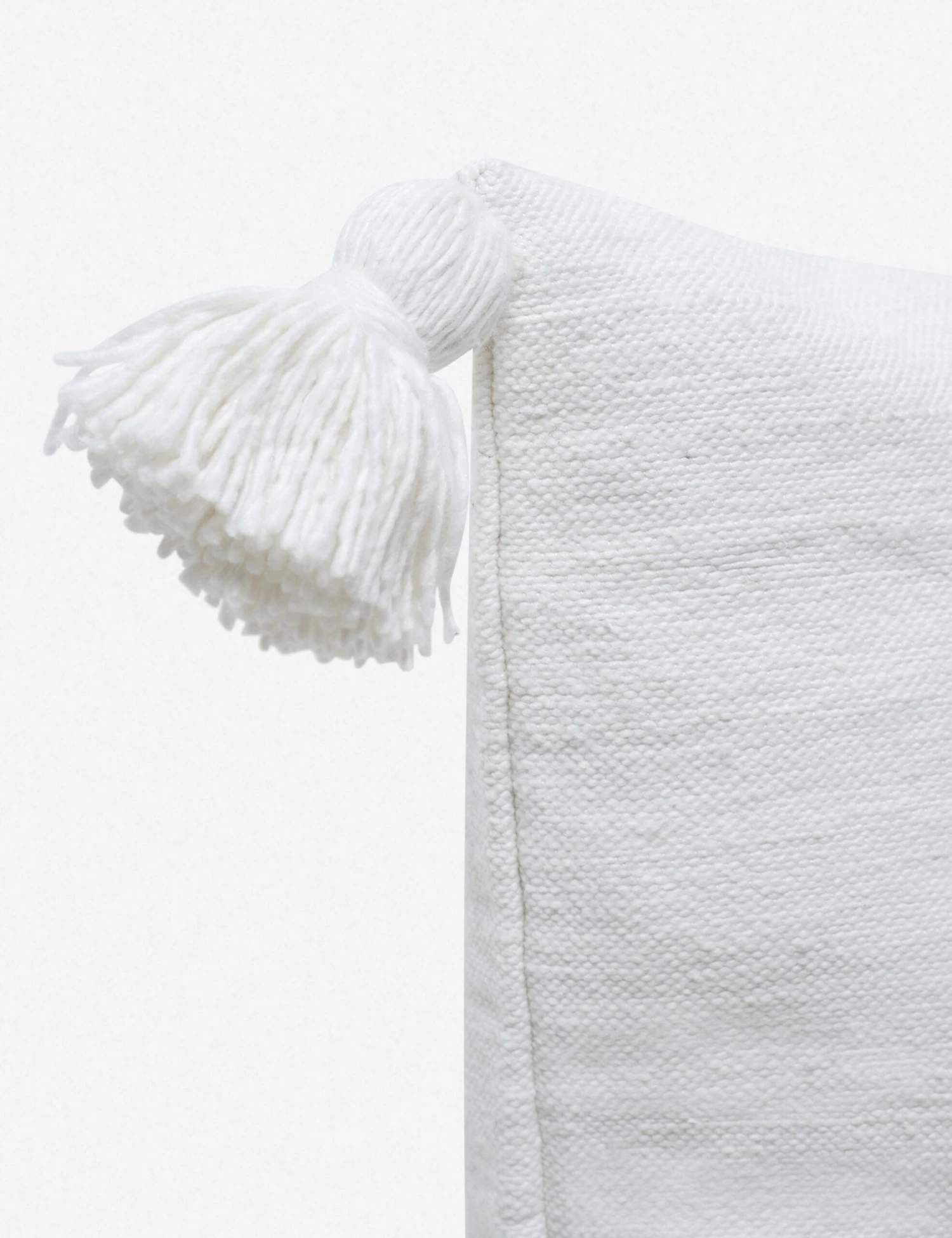 Simple colors, a cozy texture and pom poms are what we love most about this decorative pillow. Made in Morocco from 100% cotton, this throw pillow is made to give you style in your space for years to come.