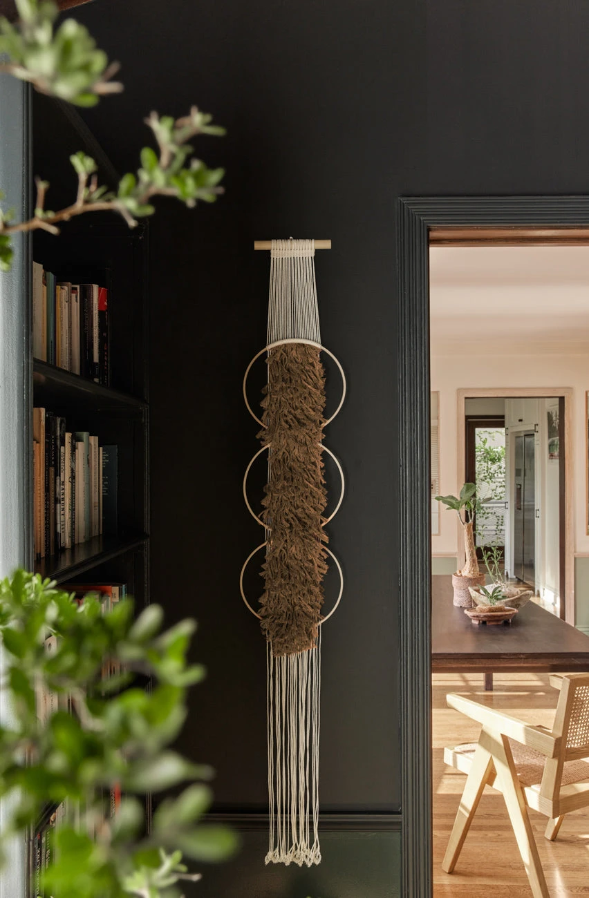 Unique and intricate, this wall hanging is handmade in the Netherlands by textile artist Nom. Nom uses a single weaving technique to create interesting patterns and textures that will bring your dimension to your space.