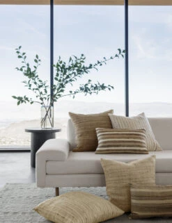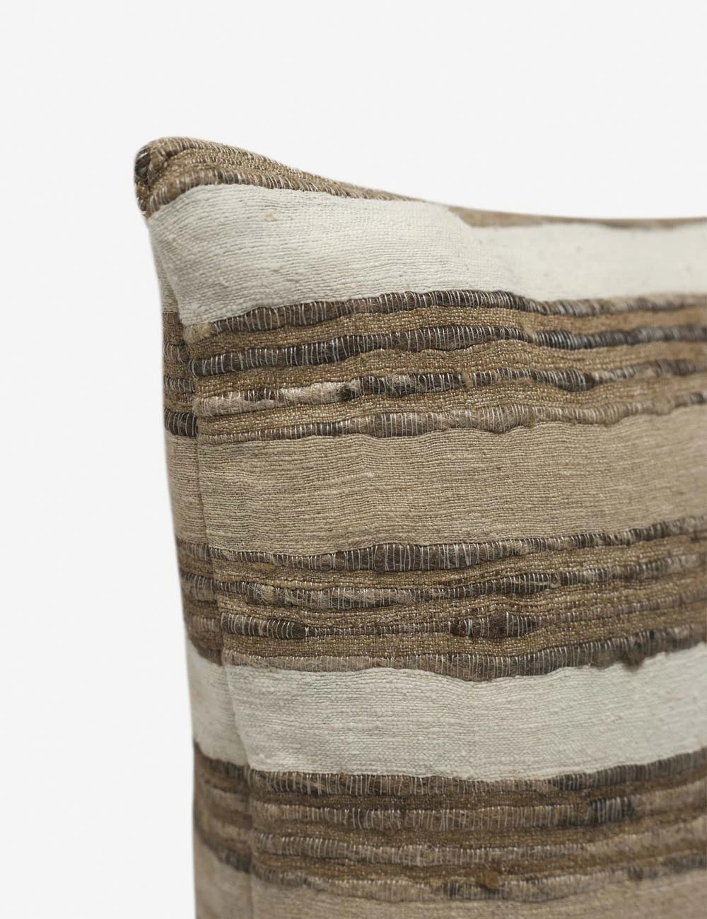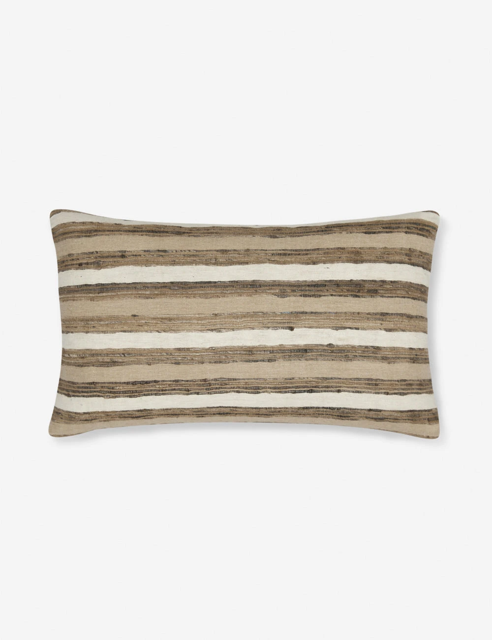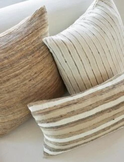Refresh your sofa or bed with a plushly stuffed throw pillow wrapped in raw silk for utterly soft appeal. The striped design blends lustrous tones with earthy hues to create a balanced accent pillow that offers a luxurious and versatile touch.