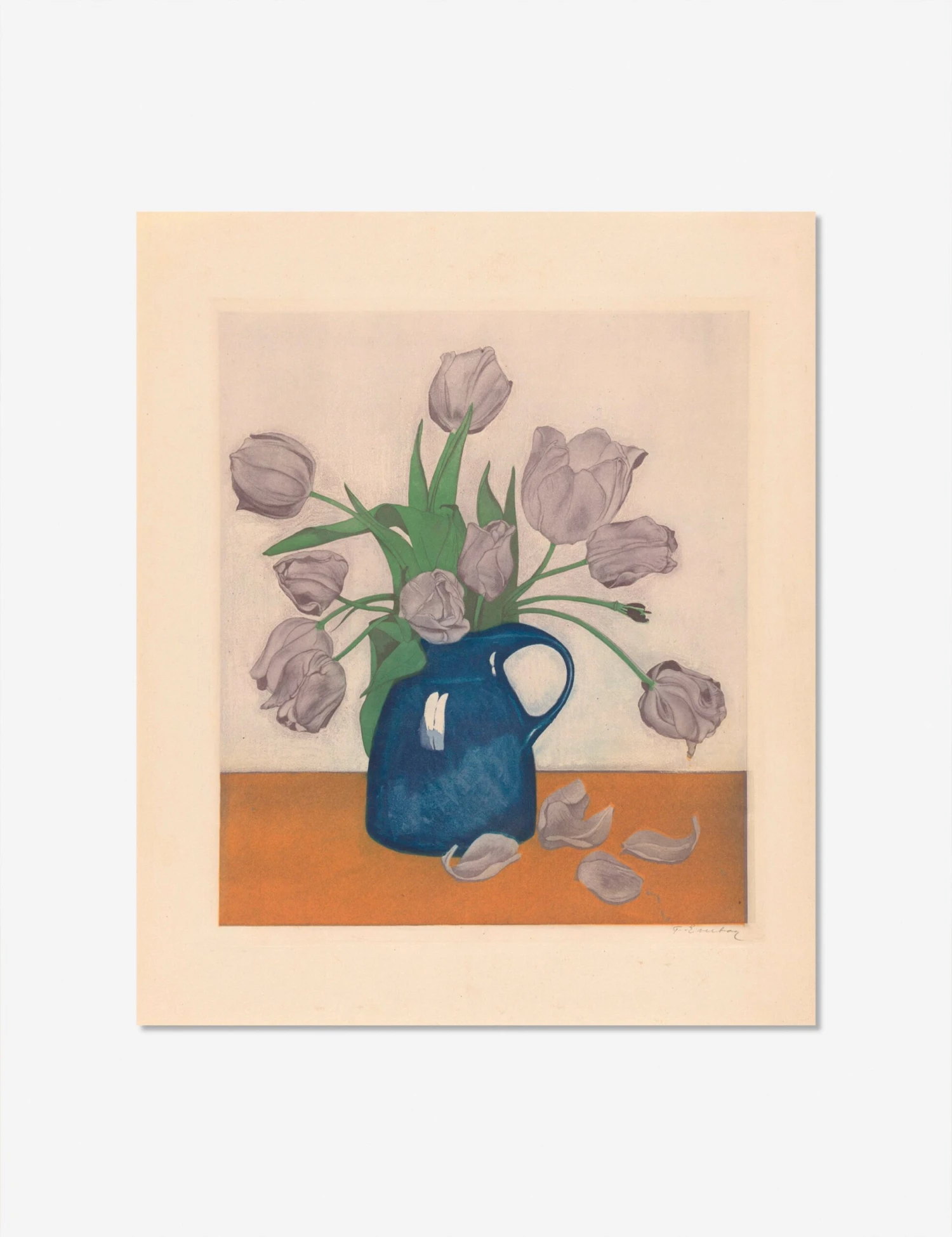 Elevate your wall art collection with this elegant still life of tulips on a table. This piece captures the delicate beauty of an everyday object offering a timeless appeal for transitional wall decor.