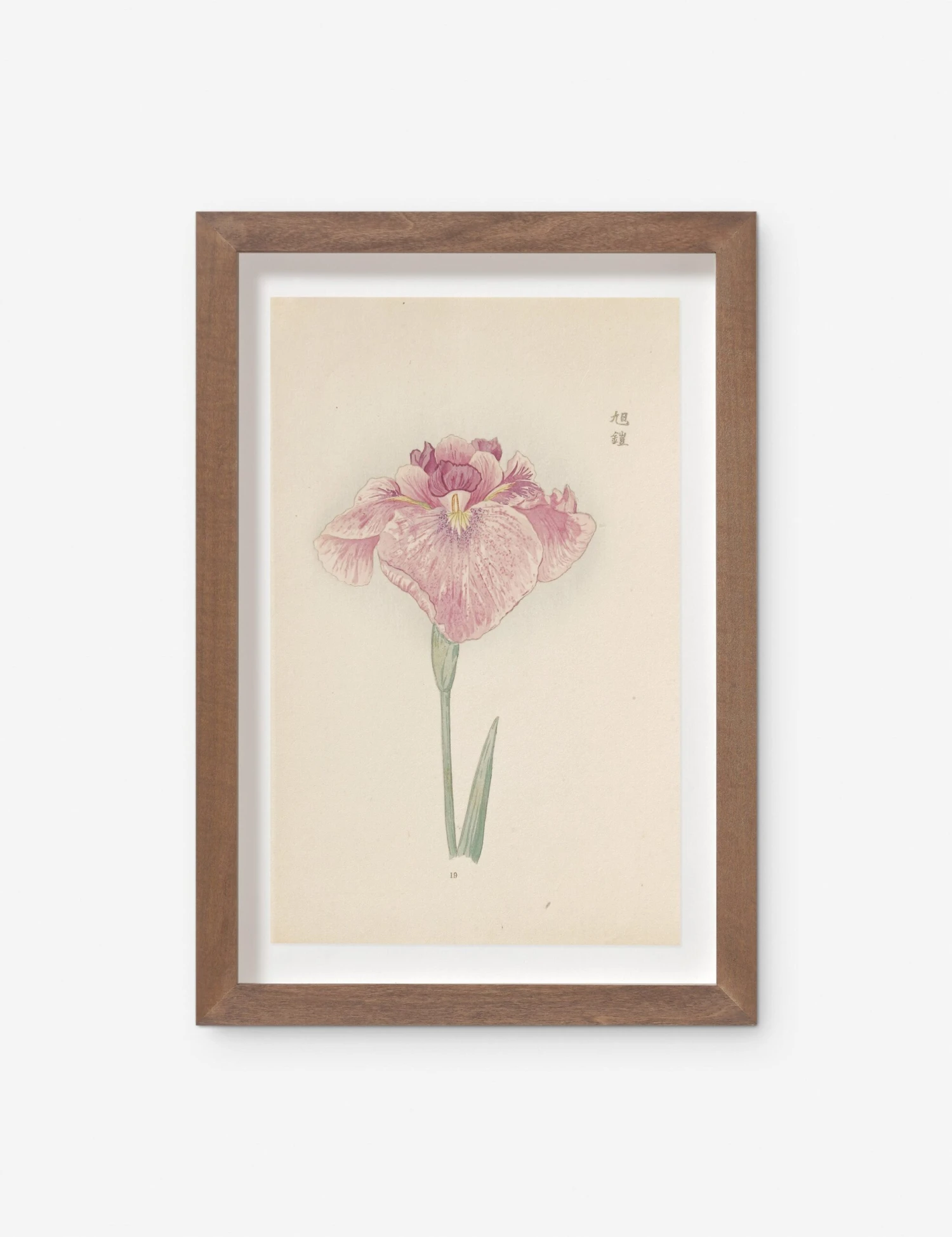 Visual Contrast is a Los Angeles-based fine art studio that produces limited-edition runs of high-quality wall art. This collection of iris paintings was painted by the Japanese botanist Miyoshi Manabu in 1921, offering a vintage touch to your wall decor. Each watercolor was painted on rice paper, adding to the delicate quality—framed in a modern walnut shadowbox and ready for any space from your home office to a bathroom or kitchen.