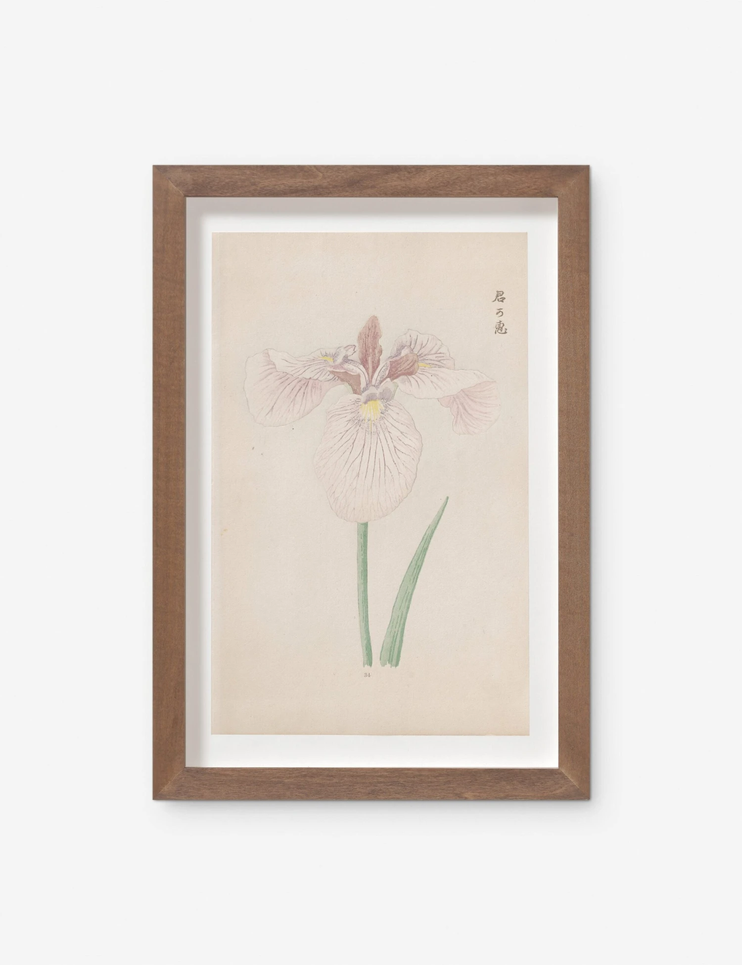 Visual Contrast is a Los Angeles-based fine art studio that produces limited-edition runs of high-quality wall art. This collection of iris paintings was painted by the Japanese botanist Miyoshi Manabu in 1921, offering a vintage touch to your wall decor. Each watercolor was painted on rice paper, adding to the delicate quality—framed in a modern walnut shadowbox and ready for any space from your home office to a bathroom or kitchen.