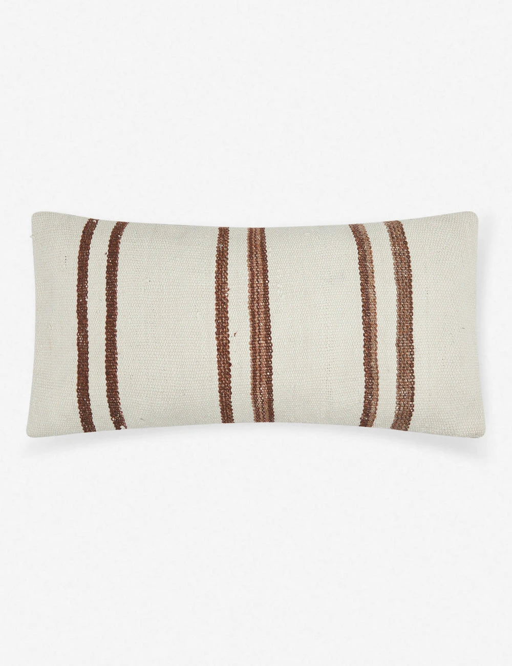 A vintage decorative pillow instantly adds warmth, stunning detail, and natural striations in color. Handcrafted from vintage wool kilims, these Turkish throw pillows are incredible layering pieces. Richly textured and full of pattern, this lumbar cushion feels like a discovery from far-flung travels.